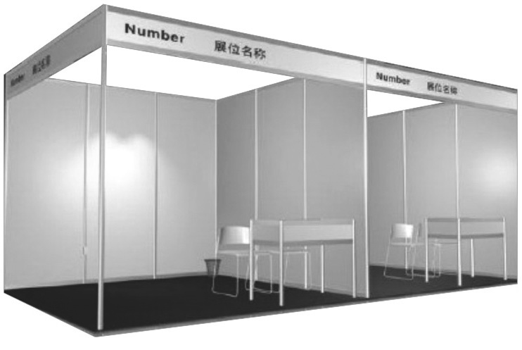 配置  | 在標準展位配置基礎上,增設地毯、廣告位、KT板門楣等,詳見效果圖。  | 長3米x寬3米x圍板高2.5米,含1張咨詢臺、2把椅子、1個220V電源插座、公司楣板;  | 不含任何展具,展商自行設計。展館方須收取每平方米10元施工管理費,特裝限高3.5-4米。  |