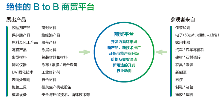 展會將以行業高性能、綠色發展為宗旨,打造更多產品主題展區及各類熱門產品區,包括UV/EB固化技術及產品區、電子材料展區、新興用膠展區等。