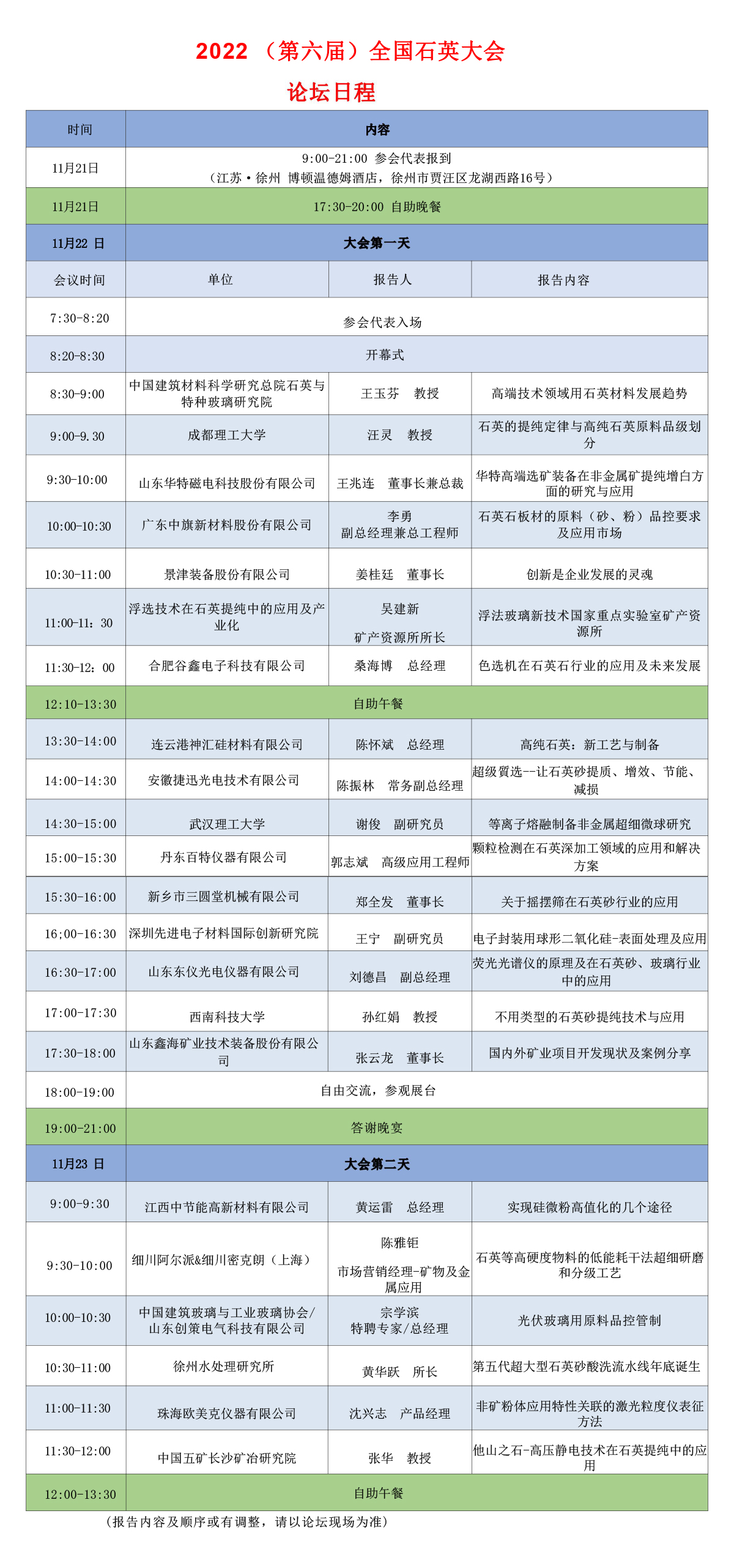 以高效利用,高端突破為主題,聚集石英產業鏈最強嘉賓,百強企業,共同演繹石英材料創新發展。全國石英大會創始于2017年,已成功連續舉辦五屆,規模越聚越大。“2022(第六屆)全國石英大會”定于2022年11月22-23日在江蘇·徐州舉辦。大會組委會力爭在規模和交流效果上實現更大的突破,更好助力石英行業發展。