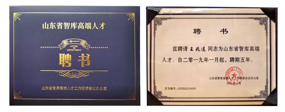 閉幕會議上,省委副書記楊東奇、副省長于杰等領導為王兆連董事長等專家代表頒發“山東省智庫高端人才”聘書,省自然科學學術創新獎。