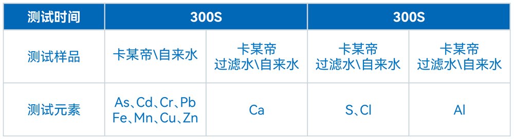 一、測試背景 水是我們生活中重要的資源之一,作為維持身體健康和生命活動的必需品,水扮演著至關重要的角色,自來水通常作為主要的飲用水源,但是由于自來水經過處理、消毒和管道運輸等步驟,其中仍可能含有雜質和污染物。而直飲水設備可通過過濾系統過濾自來水中的雜質和污染物,大大的降低對人身體安全的危害;相對于購買瓶裝水或煮沸自來水,直飲水可以減少時間和精力的浪費,做到飲用水的隨時取用。 現在市面上直飲水設備種類繁多,消費者選擇起來困難重重,因此驗證直飲水設備對自來水的過濾效果是十分有必要的。 二、TXRF技術在水質檢測中的優勢 全反射X射線熒光光譜(TXRF)作為一種新興的痕量元素分析技術,憑借其高靈敏度、多元素同時分析、樣品需求量少等優勢,正在水質監測領域展現出巨大的應用潛力。本文采用浪聲便攜式全反射X射線熒光光譜儀作為檢測設備,選取卡某帝品牌的直飲水設備作為過濾系統,通過對照實驗對自來水原水及其過濾后的水質進行技術評估,重點驗證該光譜儀對痕量重金屬的檢測性能。 三、應用案例