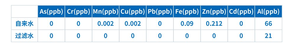 3.3測試結論 1. 查閱文獻得知,目前國內的自來水過濾大部分都采用明礬進行沉降過濾,所以自來水中測試出 Al 元素的含量是可信的。 2. 自來水和某品牌過濾水的重金屬測試結果(除Hg未測試外)均符合 GB5749-2022 飲用水標準限值要求。 3. 通過測試結果對比,自來水經過卡某帝直飲水設備過濾后,其中的 S 、Cl、 Ca 、Fe 、Mn 、Cu 、Zn 的含量明顯降低。 相關產品 更多
